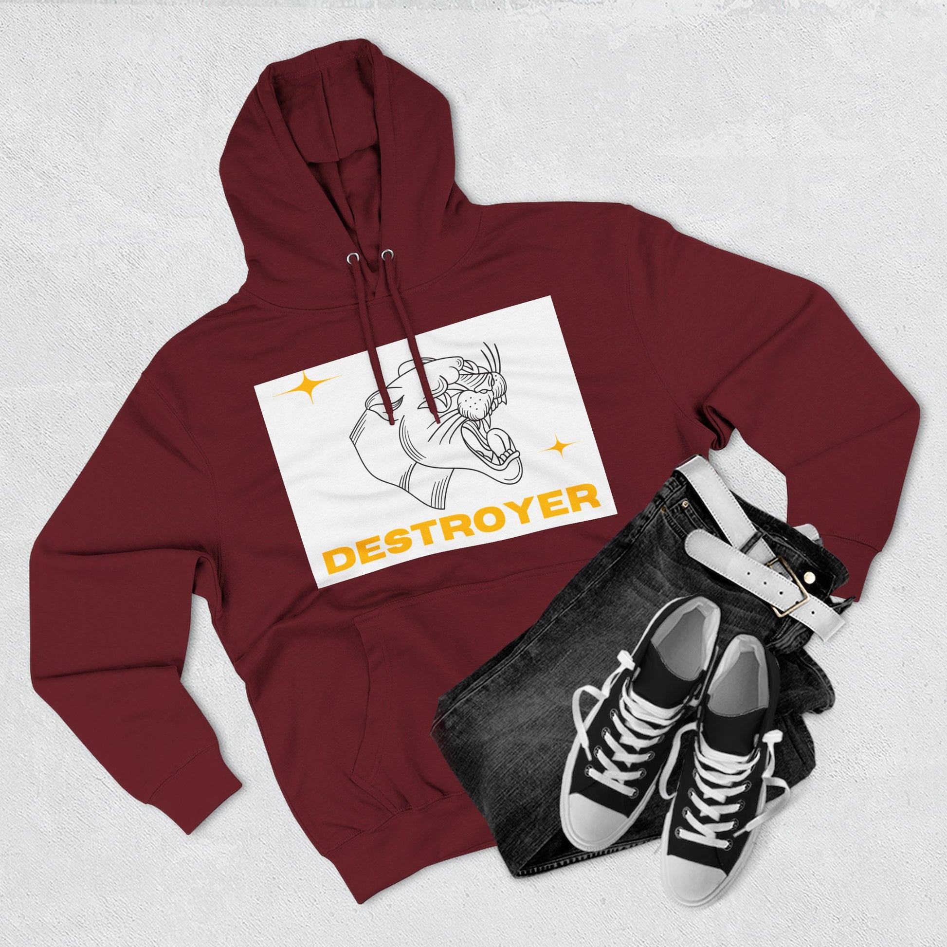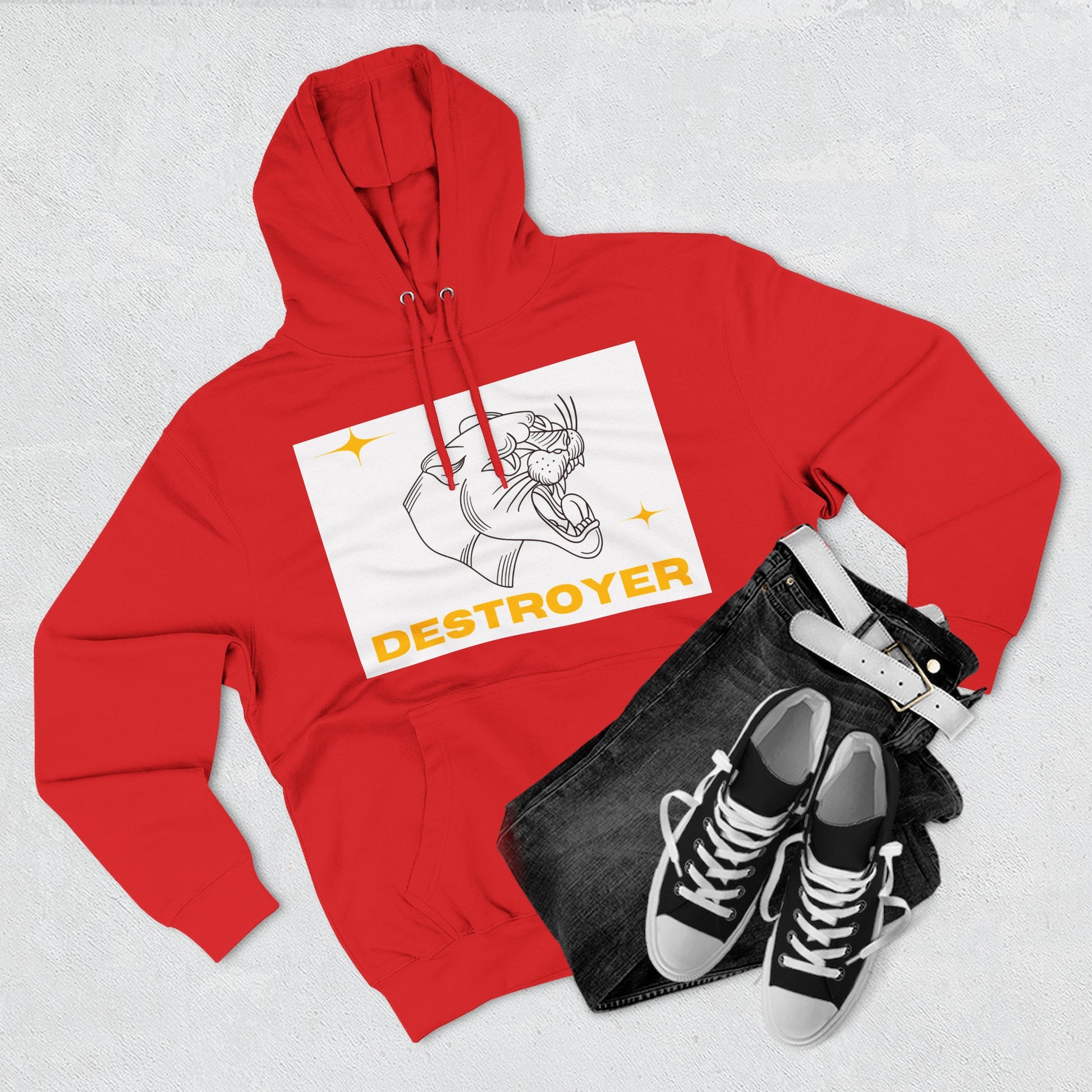 Three-Panel Fleece Hoodie with DESTROYER Design, Cozy Streetwear for Every Occasion, Perfect Gift for Friends, Fun Graphic Hoodie, [...]